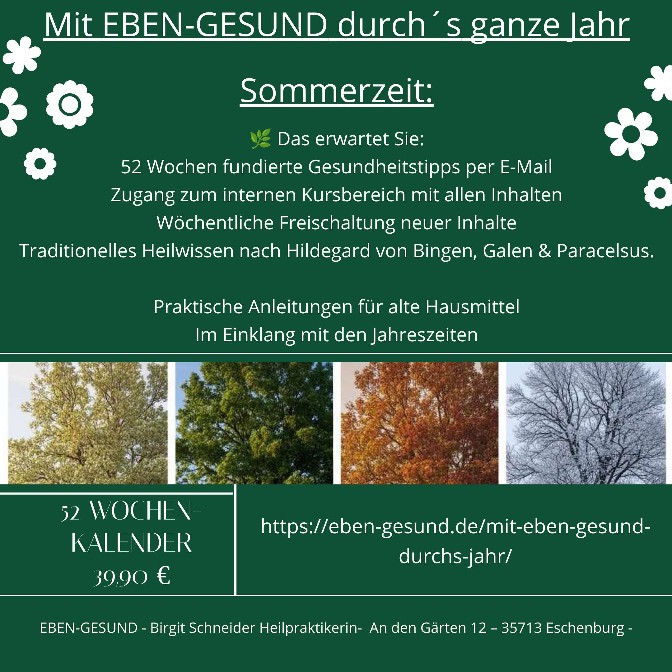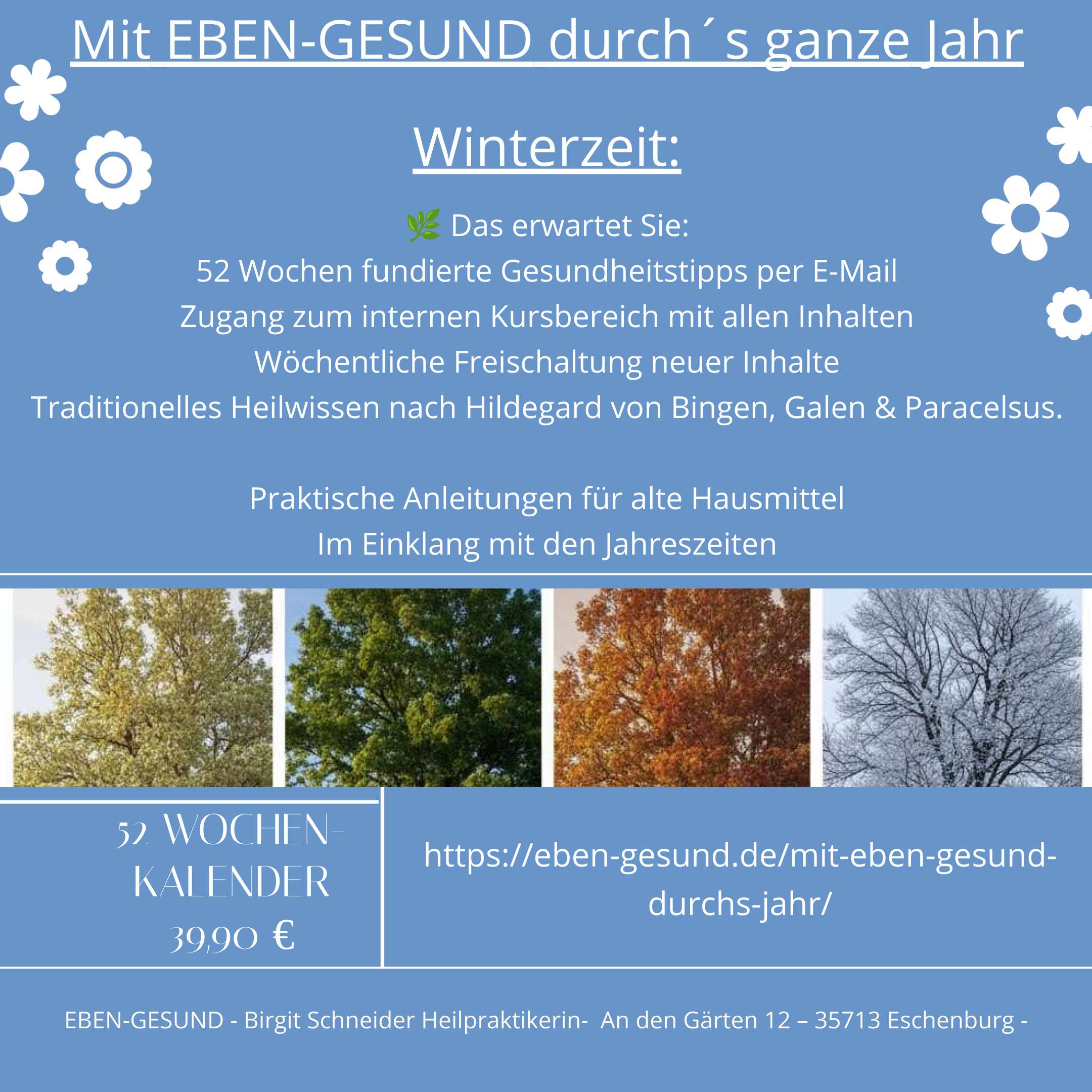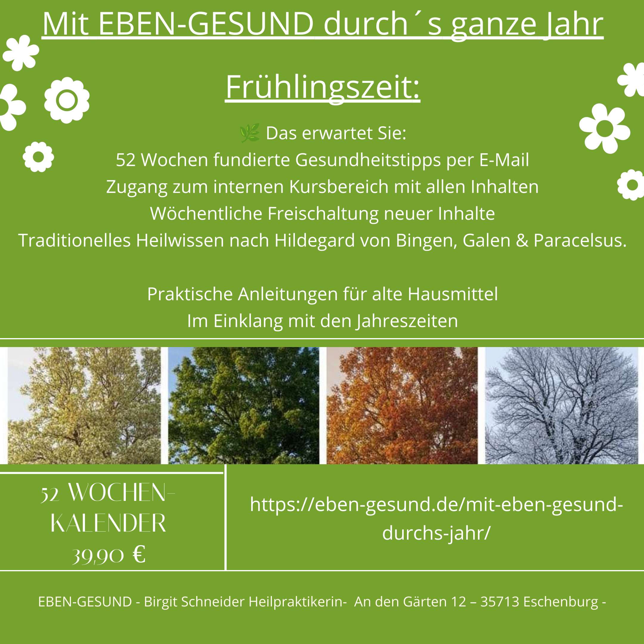 52 Wochen lang begleite ich Sie mit traditioneller europäischer Naturheilkunde durch das Jahr – Woche für Woche, im Rhythmus der Natur.